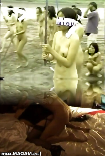 chinese nude ladies splitting a watermelon with a stick while blinded