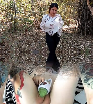 Fucking mate hot wife in wood outdoor risky public sex