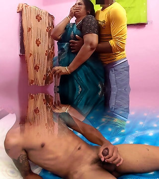 印度步骤妈妈和步骤的儿子享受性爱时妹妹是睡在同一张床上