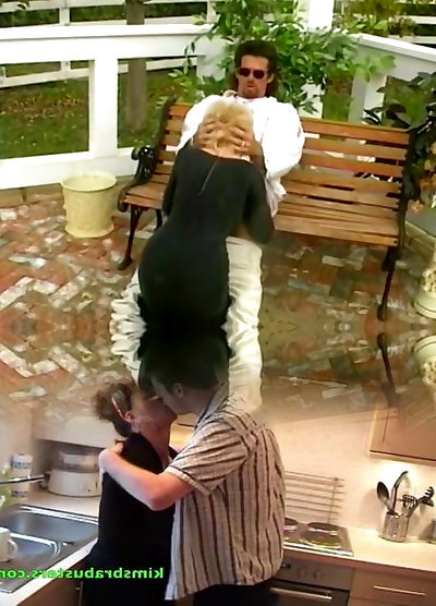 Dirty plumb crank mom sex my daddy Rhodes double slammed with black wood while blowing on another