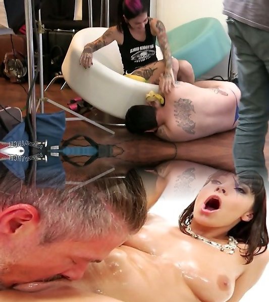 Backstage video with small tits Riely Jean giving a rimjob