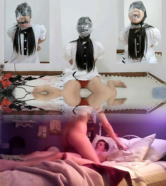 Young Nymph Mummified Ball-gagged And Masked With Sloppy Panties!