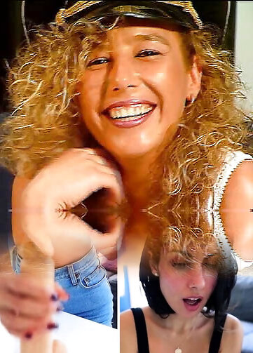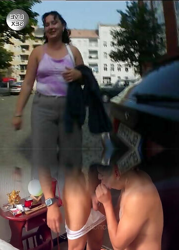 A hot blonde babe from Germany pleasing two cocks with her amazing mouth