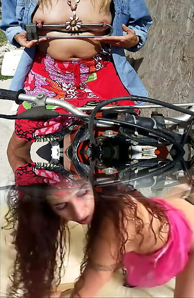 nippleringlover - insane cougar pumping pierced twat naked outdoors extreme nip piercings