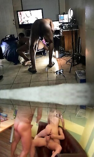gładko ogolony czarny facet pieprzy ogromny czarny cockslut& 039;s ogromny tyłek na kanapie