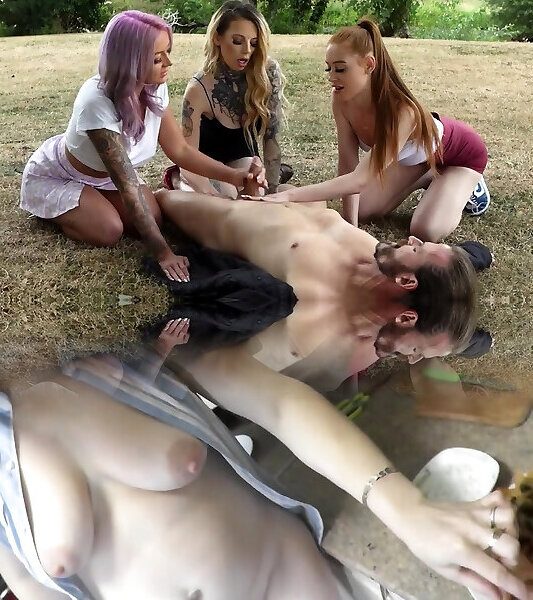 Gorgeous CFNM babes wanking guy outdoor