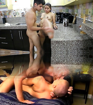 Horny brunette with a big ass, she slurps her stepbrother's rod-Spanish Porn