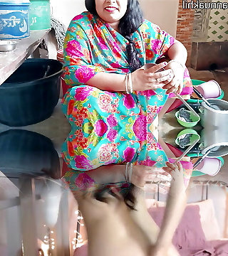 Indian Bengali Milf stepmom instructing her son-in-law how to sex with girlfriend!! In kitchen With clear dirty audio